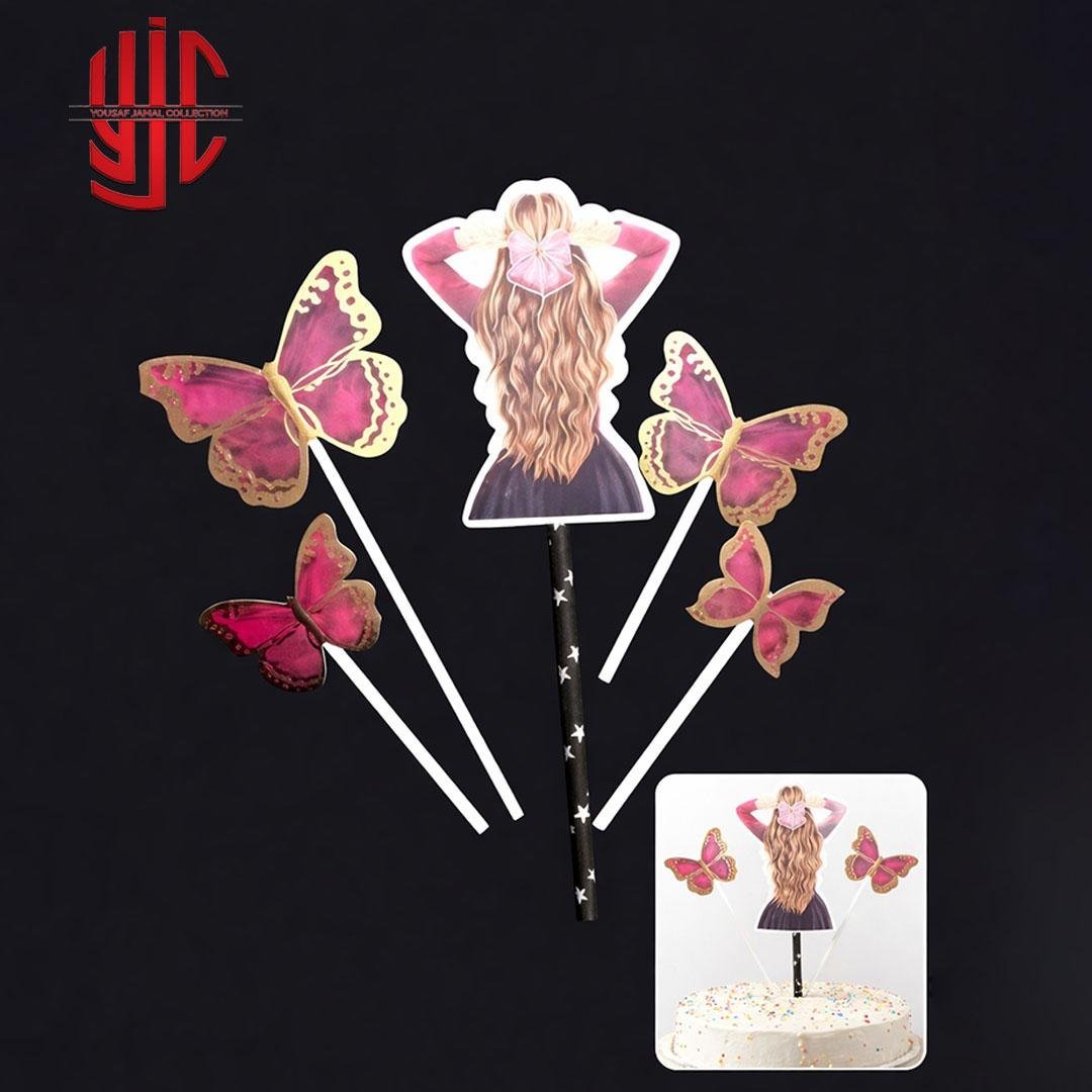 Bowknot Girl Butterfly Paper Cake Topper 5 Pieces Set