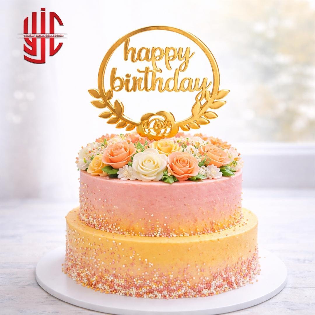 Acrylic Happy Birthday Round Flower Tags 5 Pcs Pack
