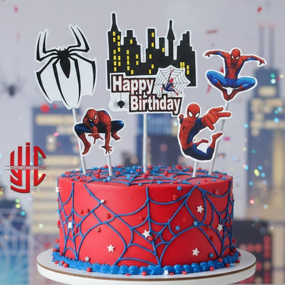 Spiderman Theme Paper Cake Topper 5 Pieces Set